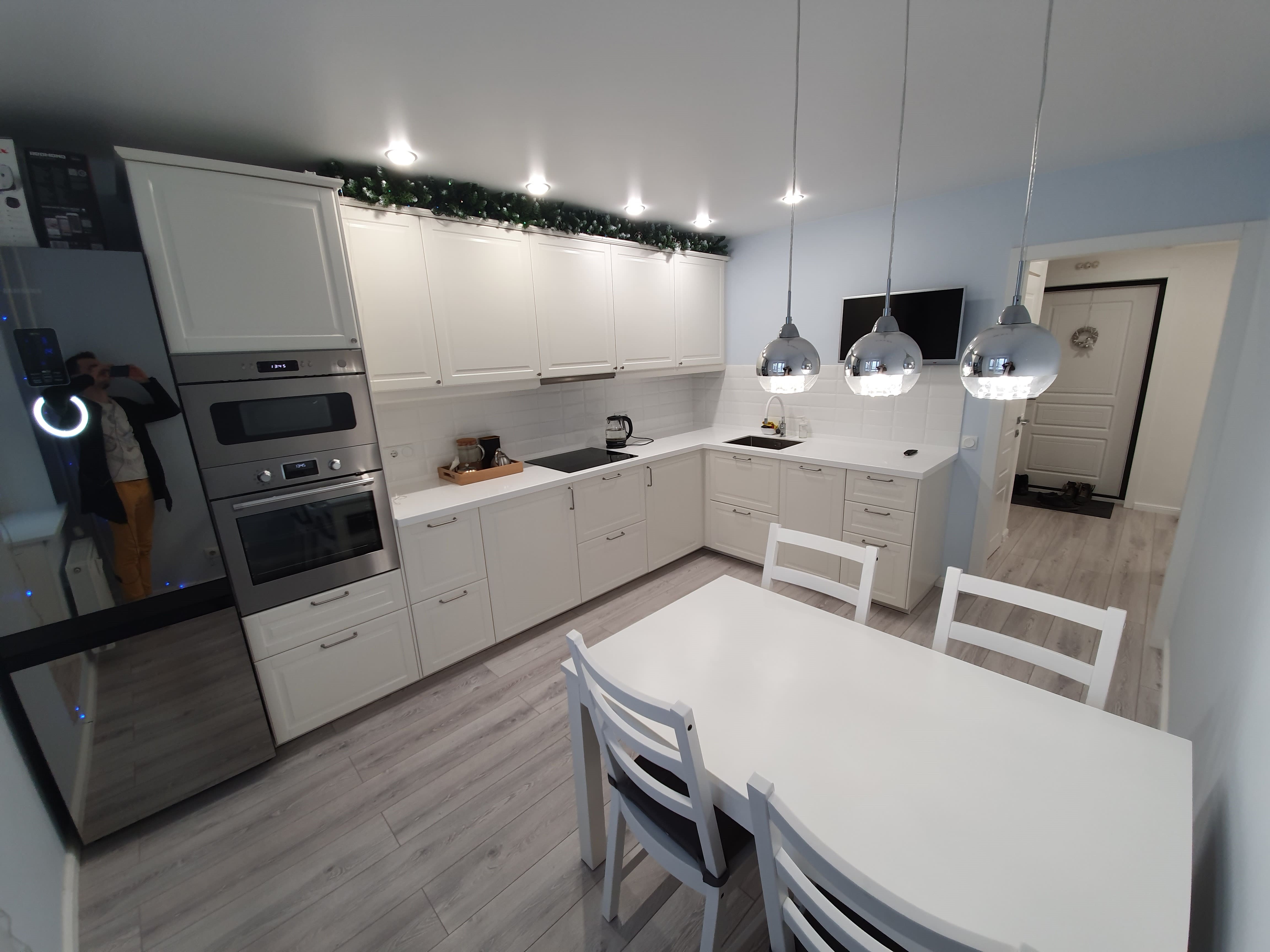 Свободное пространство, минимальное количество мебели и декора создадут уют и утонченность вашему дому. Отсутствие деталей декора порадуют любителей простора. Кухня создана для любителей кулинарии: большое пространство для хранения, много рабочих поверхностей и оригинальный светильник приглашают провести тут как можно больше времени.
