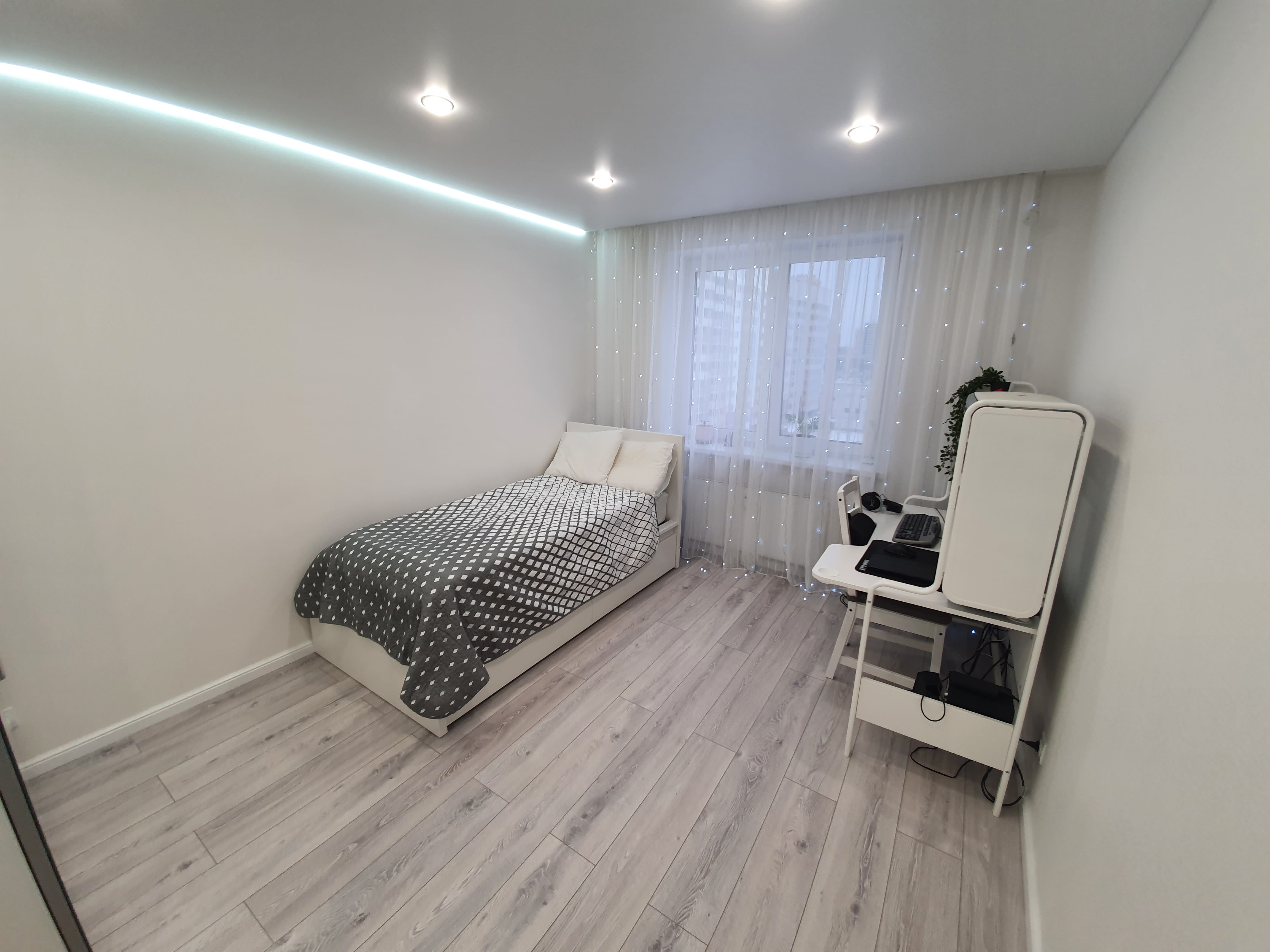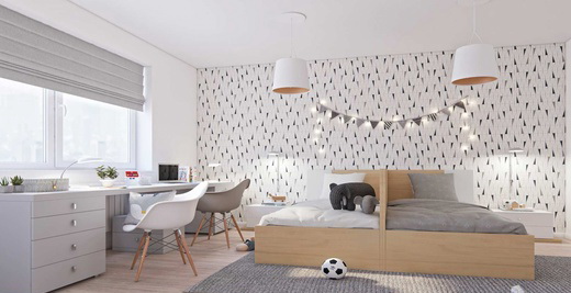 Этот стиль для людей, стремящихся к простоте и надежности. Главный принцип этого стиля – строгость и геометризм, отказ от лишнего декора. Использованы однотонные материалы, только в детской комнате стена оформлена обоями с мелким геометрическим рисунком. В остальных комнатах цветовое решение выполнено в серых тонах. Пол оформляется ламинатом и керамогранитной плиткой. Минимализм сегодня – это скорее всего философия, мировоззрение. В современном темпе жизни человек создает себе незахламленное светлое пространство, спокойствие и гармонию.